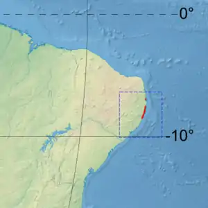 - Pernambuco State sector, extending 50 km north and south on the coast from the major city of Recife. The section includes the estuaries of the Tracunhaém River, Pirapama River, and Ipojuca River