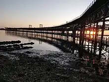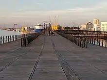 The Rio Tinto Pier (Spanish: Muelle de Rio Tinto) was a commercial pier formerly used for the trade of material from the mines of the Rio Tinto Company in Andalusia, Spain. It is situated on the River Odiel in the city of Huelva. An estimated 150 million tons of ore were shipped from the pier over its life. Closed in 1975, it is now a popular tourist attraction and fishing spot. The pier is 1165 meters long, although part of that is built on reclaimed marshland.[1]