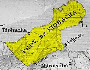 Riohacha Province was a province of Gran Colombia. With the 1824 changes in the subdivisions of Gran Colombia, it became part of Magdalena Department.