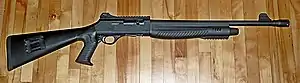 A riot shotgun is a shotgun designed or modified for use as a primarily defensive weapon, by the use of a short barrel and sometimes a larger magazine capacity than shotguns marketed for hunting.[1][2] The riot shotgun is used by military personnel for guard duty and was at one time used for riot control, and is commonly used as a door breaching and patrol weapon by law enforcement personnel, as well as a home defense weapon by civilians.[3][4] Guns of this type are often labeled as breaching shotguns, tactical shotguns or special-purpose shotguns to denote the larger scope of their use; however, these are largely marketing terms.