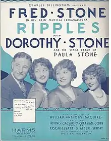 Ripples is a “new musical extravaganza” (musical comedy) in two acts with book by William Anthony McGuire, lyrics by Irving Caesar and Graham John, and music by Oscar Levant and Albert Sirmay. The show was produced by Charles Dillingham at the New Amsterdam Theatre, and opened February 11, 1930.[1]
