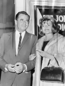 Hayworth also had a long-term on-and-off 40-year affair with Glenn Ford, which they started during the filming of Gilda in 1945.[55] Their relationship is documented in the 2011 biography Glenn Ford: A Life by Ford's son, Peter Ford. Peter revealed in his book that his father got Hayworth pregnant during the filming of The Loves of Carmen; she travelled to France to get an abortion.[56] Ford later moved next door to her in Beverly Hills in 1960, and they continued their relationship for many years until the early 1980s.[57][58][59][60][61]