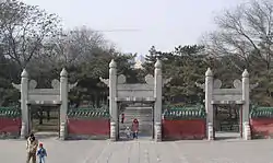 The altar was built in 1530 during the late Ming Dynasty for use in ritual sacrifice to the sun by the Emperor of China.[1] The original Altar of the sun was a rectangular white-stone dais covered with red glaze, and four stairways (north, east, south and west) with nine steps measuring 18.3 yards in width and length, and 7 feet in height. The temple had been destroyed and restored to reopen in 1556 to the public.[2]