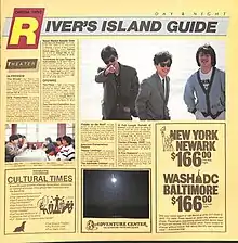 In the previous album, Aqua City, the songs centered around summer and the sea, but in this work, there many songs were set in the city. "River's Island" is the title of Manhattan Island, New York City.[3] The lyrics card of the record is made like a guide that introduces local plays, orchestras, and music facilities. However, all the production, including recording, was done in Japan. The sound also changed to adult with black contemporary in mind.