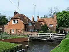 To the east of Bradfield the Pang is joined by the River Bourne and turns north to flow through the villages of Tidmarsh and Pangbourne, eventually entering the Thames between Whitchurch Lock and Whitchurch Bridge.[3]