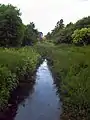Oldbury Arm of the Tame close to its entrance to the Sheepwash Urban Park, between Great Bridge, Tipton, and West Bromwich. At this point it is still only 1–2 metres wide if not in flood.