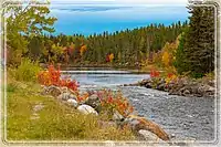 From the mouth of the "rivière aux Sables", the current successively follows the course of the Saguenay River on 142.7 km (88.7 mi) east to Tadoussac where it merges with the Saint Lawrence estuary.[2] The mouth of "rivière aux Sables" is at 14.5 km (9.0 mi) upstream from the mouth of Chicoutimi River.