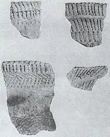 Two Late Woodland ware groups were identified in Fitting's typology: Wayne Ware and Riviere Ware.[1]