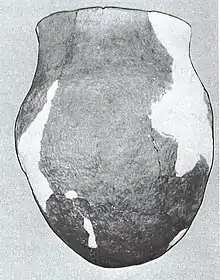 - Stone tools - including projectile points, scrapers, drills and perforators. It was suggested that the stone and bone tools were underrepresented at Riviere au Vase when compared to the amount of pottery present. There were 38 projectile points found at the site; the most numerous category was the triangular Levanna point (15) and the second most numerous were the smaller triangular Madison point (8). These types of points, also known as “arrowheads”, are thought to be arrow-tips for bows-and-arrows. The usage of the bow-and-arrow seems to have greatly increased during the Late Woodland, probably as a result of increased conflict. The Levanna points were more common from c. A.D. 900 - A.D. 1350 and afterwards the Madison points are more prevalent. The predominance of Levanna points at Riviere au Vase implies the site has an early time placement within the Late Woodland period.[1][4]