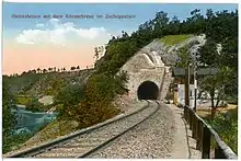 The Harass (or Harrassprung—"Haras’ leap", referring to the legend of a leap on horseback off the rocks into the river said to have been made by Dietrich von Harras in 1449) tunnel runs through the Harass rocks (Harrasfelsen) between Braunsdorf and Frankenberg. It was the site of a serious railway accident on 14 December 1913. During a winter storm, about 100 m³ of rock broke away from the Harass rocks and blocked the southern exit of the tunnel. Shortly after 22.15, a passenger train from Frankenberg to Niederwiesa ran into the debris. The accident claimed 10 dead and 53 wounded and is still regarded as the worst rail disaster in Saxony.