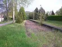 The lower section between Hainichen and Roßwein, however, remains unused. In 2005, it was abandoned by Regio Infra Service Sachsen and the city of Hainichen decided to dismantle the tracks in order to build a cycle path on the route.