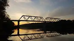 The Kyiv Bridge (Ukrainian: Київський міст, romanized: Kyivs'kyy mist) or the Road bridge across the Desna (Ukrainian: Автомобільний міст через ріку Десну) is a currently destroyed brick-and-stone bridge over the Desna River in Chernihiv, Ukraine. It's located along Peace (Myru) Avenue (Ukrainian: Проспект Миру).
