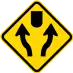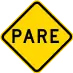 Like many South American countries, the road signs in Brazil are strongly based on the US MUTCD standard, but with text in Portuguese. The regulatory, prohibitory and mandatory signs are all of them white circular with red borders, with the exception of the stop and the yield sign. The warning signs are yellow diamonds (or orange when used on road works). Units are expressed in compliance with the International System of Units.