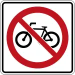 The following are samples of Quebec road signs.[10][11][12] A notable difference between Quebec road signs and those of the rest of Canada is Quebec's use of a white chevron on a red background to mark road alignment around a curve, whereas the remainder of the country employs a black chevron on a yellow background.
