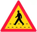 Warning signs are triangular, but in contrast to those of most other states using triangular warning signs, Finnish signs have yellow backgrounds, rather than white.