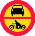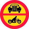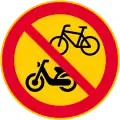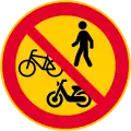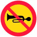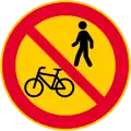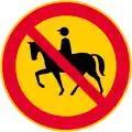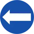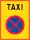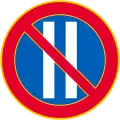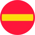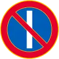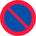 Prohibitory signs are round with yellow backgrounds and red borders, except the no parking and no standing signs that have a blue background instead of yellow.