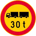 No vehicles or combination of vehicles exceeding [...] tonnes laden weight or bearing capacity class