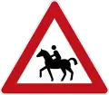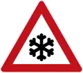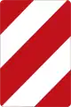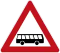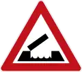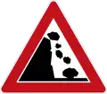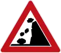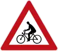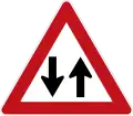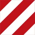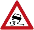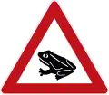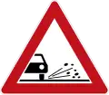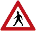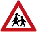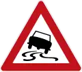 Danger signs pursuant to part 2 of the VzKat which includes permissible variations of signs listed in annex 1 of the StVO. When one sign has two sign numbers, the first number is the illustrated sign while the latter number is a mirrored or slightly altered version of the sign.
