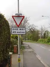 Plate used with "GIVE WAY" triangle to give the distance to GIVE WAY line