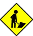 Worded warning sign (in this case "Road Work")