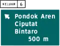 Road signs in Indonesia are standardized road signs similar to those used in other nations but with certain distinctions. As a former Dutch colony, until the 1970s road signs in Indonesia closely followed The Netherlands rules on road signs. Nowadays, Indonesian road sign design are a mix of European, British, US MUTCD, New Zealand, and Japanese road sign features. According to the 2014 Minister of Transport's Regulation No. 13 concerning Traffic Signs,[1] the official typeface for road signs in Indonesia is Clearview. Indonesia formerly used FHWA Series fonts (Highway Gothic) as the designated typeface though the rules are not being implemented properly.