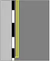 Edge line (used along roads, not in built-up areas, or divide the road shoulder of an expressway from the inside lane)