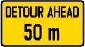 Temporary work-zone signs are mounted to ensure roads keep a free flow of traffic despite being affected by road works in the vicinity. It closely follows the American MUTCD traffic sign (e.g. vermillion diamond, vermillion rectangular or amber rectangular-shaped signs).