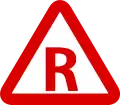 Warning signs indicate possible dangers or unusual conditions ahead and alert motorists, so they may anticipate the appropriate actions to take. They are usually shaped as triangles with a red border, and mounted on a borderless white backing board, which is similar to the United Kingdom traffic sign.