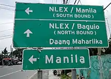 Road signs in the Philippines are regulated and standardized by the Department of Public Works and Highways (DPWH).[1][2] Most of the signs reflects minor influences from US and Australian signs, but keeps close to the Vienna Convention on Road Signs and Signals as an original signatory.[3][4]