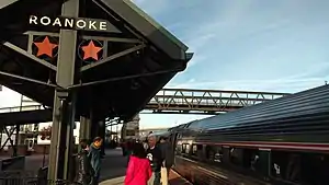 Roanoke station is a train station in Roanoke, Virginia, the current terminus of Amtrak's Northeast Regional line. Built in 2017, it follows several other Roanoke passenger stations that operated from the 1850s to 1979.[2] The station consists of a single high-level platform with a heated shelter. It is unstaffed, with no baggage service. All tickets must be purchased in advance; there is no Quik-Trak kiosk at the station.