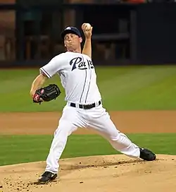 In 2014 with the Padres, he was 4-5 with a 4.99 ERA.[7] He missed most of the season with left elbow soreness.[8] In 2015 with San Diego, he was 1-2 with a 4.76 ERA.[7]