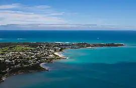 Robe is a town and fishing port located in the Limestone Coast of South Australia. The town's distinctive combination of historical buildings, ocean, fishing fleets, lakes and dense bush is widely appreciated. Robe lies on the southern shore of Guichen Bay, just off the Princes Highway. At the 2016 census, Robe had a population of 998.[8] Robe is the main town in the District Council of Robe local government area. It is in the state electorate of MacKillop and the federal Division of Barker.