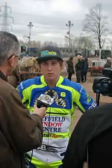 In late 2010 he was signed by Premier League Redcar Bears on a full transfer, and rode for both Redcar and Buxton in 2011.[1][3] He averaged 2.82 for the Bears in 2011, and the following season only made a handful of Premier League level appearances for Redcar and Berwick Bandits, suffering a knee injury late in the season.[4]