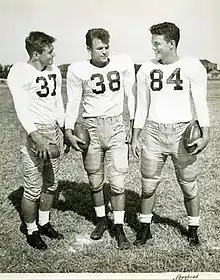 Robert Folsom grew up in the Oak Cliff district of Dallas. He attended Sunset High School where he was a standout athlete and student.[1] After high school, Folsom attended The United States Military Academy in West Point, NY where he played football and basketball for the Cadets. During his time at the Academy, Folsom played in two "Games of the Century" 1945 vs. Navy and 1946 vs. Notre Dame. President Truman attended the game against Navy. Playing against Michigan in Yankee Stadium in 1945, Folsom caught a touchdown pass. During his time at Army, Folsom was a part of two national championship teams. After two years at West Point, Folsom transferred back to his hometown University, Southern Methodist University. He would go on to be the only four sport letter winner in the history of the school (Football, Basketball, Track and Baseball).[5] He is also one of the only college football players to have played alongside three Heisman Trophy Winners (Glenn Davis, Doc Blanchard, and Doak Walker), as well against two others, (Johnny Lujack and Leon Hart)