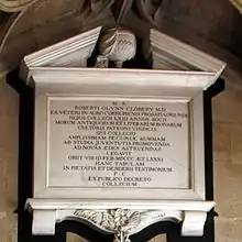 Late in life Glynn inherited a considerable property from a maternal uncle, and with it took the name of Clobery. He died at his rooms in King's College, Cambridge, on 6 February 1800, and, according to his own direction, was buried in the vault of the college chapel by torchlight, between the hours of ten and eleven at night on 13 February, in the presence of members of the college only. A tablet to his memory was placed in King's College Chapel, in a small oratory on the right hand after entering its south door.[2]