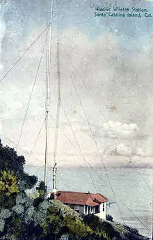 Marriott encountered extensive skepticism among the residents of Santa Catalina about the feasibility of his project, to the point that a family acquaintance implied that, if needed, he was willing to help Marriott quietly leave the island to avoid the embarrassment of failure.[5] However, in August 1902 regular service was begun, following a successful demonstration to representatives of the Los Angeles Herald.[6] (Although this was the first commercial radiotelegraph link established in the United States by a U.S. company, the British-based Marconi Wireless Telegraph Company had previously established commercial stations on multiple islands in the Territory of Hawaii and at Nantucket Lightship, Massachusetts.)