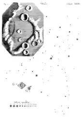 Hooke's activities in astronomy extended beyond the study of stellar distance. His Micrographia contains illustrations of the Pleiades star cluster as well as of lunar craters. He performed experiments to study how such craters might have formed.[66] Hooke also was an early observer of the rings of Saturn,[67] and discovered one of the first observed double-star systems, Gamma Arietis, in 1664.[68]