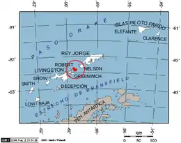 ![]() Location of Robert Island in the South Shetland Islands | |
