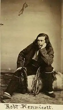 In April 1859 he set off on an expedition to collect natural history specimens in the subarctic boreal forests of northwestern Canada in what is now the Mackenzie and Yukon river valleys and in the Arctic tundra beyond. Kennicott became popular with Hudson's Bay Company fur traders in the area and encouraged them to collect and send natural history specimens and First Nations artifacts to the Smithsonian. He returned to Washington at the end of 1862. Kennicott considered joining the Union Army in the Civil War, but was convinced otherwise, sending a substitute.[1] Robert and his younger brother lived in the Smithsonian Castle during the war along with Edward Drinker Cope and other noted naturalists.[2] He returned to Illinois in 1863 to tend to his ailing father, who died later that year.[1]