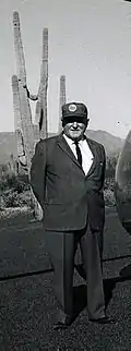 In 1962 he earned the additional moniker "Desert Fox" for his design of the Desert Forest Golf Club, the world's first course built entirely in the desert.[1] At Desert Forest, the Championship Golf Course at the University of New Mexico, and other courses, he is known for building a course using the natural terrain of the area and including the original aspects of the region in the design.[4][5] In 1974 Lawrence designed an 18-hole addition to The Wigwam golf club, a course that was eventually named the "Red" course in honor of his long-term nickname.[6] His golf courses at the Tubac Golf Resort & Spa were featured in the 1996 Kevin Costner film Tin Cup.[7] Lawrence died in Tucson on July 27, 1976 at the age of 83, and inducted into the Arizona Golf Hall of Fame posthumously in 2003.[1][2]