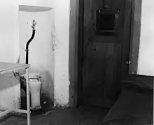 As Nazi Germany collapsed in early 1945, Ley was among the government figures who remained fanatically loyal to Hitler.[21] He last saw Hitler on 20 April 1945, Hitler's birthday, in the Führerbunker in central Berlin. The next day he left for southern Bavaria, in the expectation that Hitler would make his last stand in the "National Redoubt" in the alpine areas. When Hitler refused to leave Berlin, Ley was effectively unemployed. On 16 May he was captured by American paratroopers of the 101st Airborne Division in a shoemaker's house in the village of Schleching.[22] Ley told them he was "Dr. Ernst Distelmeyer," but he was identified by Franz Xaver Schwarz, the treasurer of the Nazi Party and a long-time enemy.