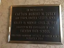 In 1980, the classmates of Losey from Trenton High School class of 1924 erected a plaque in his honor at the War Memorial in Trenton.