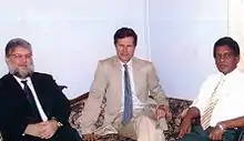 Blake arrived in Sri Lanka on September 8, 2006, to take up his duties as Ambassador to the Democratic Socialist Republic of Sri Lanka and the Republic of Maldives. Blake presented his credentials on September 9 to Sri Lankan President Mahinda Rajapaksa. In January 2007 he met with President Maumoon Abdul Gayoom to discuss renewable energy in the Maldives. In February 2007, Blake received minor injuries from a mortar blast while exiting a helicopter at a Sri Lankan air base in Batticaloa, where he was to attend a development meeting. Tamil rebels are believed to be responsible for the mortar attack.[8] The Tigers claimed they were not informed by the government that the ambassador was present and were only returning fire from the Sri Lankan Army.