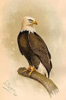 Robert Ridgway's career-crowning work, on bird systematics, was the monumental 6,000-page The Birds of North and Middle America, published by the Smithsonian in eleven volumes between 1901 and 1950. He began the work in 1894 at the direction of Goode. A major objective of the work was to resolve problems of naming and classification in the scientific literature of the time and to identify synonyms.[93] Dry, rigorous, and technically detailed in its language, the book was not considered to be accessible by the general reading public.[94] Continuing the pattern of the Manual (and Baird's earlier Review of American Birds), each volume featured an appendix of engraved outline drawings of generic characteristics.[95]