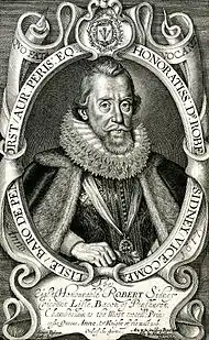 Robert Sidney, 1st Earl of Leicester KG (19 November 1563 – 13 July 1626), second son of Sir Henry Sidney, was a statesman of Elizabethan and Jacobean England. He was also a patron of the arts and a poet. His mother, Mary Sidney née Dudley, was a lady-in-waiting to Queen Elizabeth I and a sister of Robert Dudley, 1st Earl of Leicester, an advisor and favourite of the Queen.