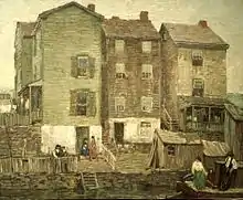 In 1906 Spencer moved to the Bucks County area, where Charles Rosen had settled three years earlier. For the next few years he lived in various small towns on the Delaware River.[2] These included Frenchtown, New Jersey and Point Pleasant, Pennsylvania.[4] During this period he studied with Daniel Garber, who strongly influenced his style.[2] For a few years Spencer and an artist friend Charles Frederic Ramsey lived in poverty in an extremely dilapidated old house called the Huffnagle Mansion.[lower-alpha 1][2] They paid a nominal rent of $2 per month. The house had peeling plaster and little in the way of heating. The lavatory was an outhouse. Spencer was very productive during this period, and won awards at the National Academy of Art and Design and the Art Club of Philadelphia.[2]