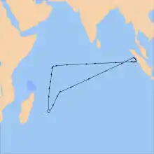 Émilie departed on 3 September 1795 with a congé de navigation authorising her to defend herself, but not to take prizes as a privateer. The next day, she made a port call at Saint-Denis before cruising to Mahé.[13] At Sainte Anne Island, two large British ships chased him, but he was able to evade them by sailing through the reefs,[9] at night.[13]