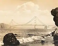 In 1916 Scott migrated with his wife and children to California where his brothers George, Henry and Alfred had already settled. He set up a studio at 340 Kearny Street, San Francisco in 1918,[14] and lived in Berkeley.[15] By 1920 he had moved to 21 Stockton Street, near Geary, San Francisco,[16] where he was advertising prints for 50 cents each.[17] He contributed panoramic and other imagery of nautical activities on San Francisco Bay to yachting and boating magazines,[18][19][20][21] and his pictures, examples of which he donated to the California Historical Society in 1936,[22] provide a valuable record of the landscape of the city.[23][24][25][26][27] He was a member of the Seattle Camera Club probably through correspondence and contribution of photos for exhibits, and was producing panoramic views well into the 1930s.[15] His residence is listed as Boston and occupation "scenic photographer" on his WW2 draft registration card of April 1942.