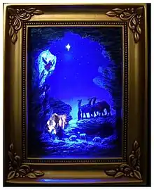 In 2007, Olszewski began the Gallery of Light® Collection, which presents scenes from Disney films in a 3-dimensional framed box, with LED lights that turn on and off to illuminate the scene.[25] The first piece in this collection pictured the "Jail Scene" from the Pirates of the Caribbean attraction at Disneyland.[26] The Gallery of Light Collection has expanded to include other works beyond the Disney scenes. In 2008, Olszewski was commissioned by Enesco to create Gallery of Light pieces featuring the art of Walt Disney, painter Thomas Kinkade, Norman Rockwell art, images of Elvis, Leonardo da Vinci's "The Last Supper," and Olszewski's own "Nativity" series.[27]