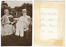 He was born in 1860 in Port Glasgow as Robert Weir Schultz, the son of Henry Schultz, a Greenock sugar refiner, and Isabella Small Weir, the daughter of Dr Robert Weir of Galashiels. Due to this family connection, when Henry Schultz died in 1863 the infant Robert was sent to Galashiels to be raised by his aunt Jane, the wife of Dr Alexander Cunningham Tweedie. Of German roots, he was subjected to anti-German hysteria during WWI. He added his mother's maiden name as an additional surname in 1915 and was from then known as Robert W. S. Weir or R. W. S. Weir, thus hiding his German surname.[1]